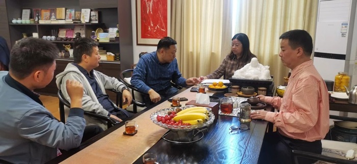 11月13日协会秘书长俞万丰陪同宁波鄞州百事特威进出口有限公司总经理朱磊一行赴宁波光彩手袋有限公司对接交流。