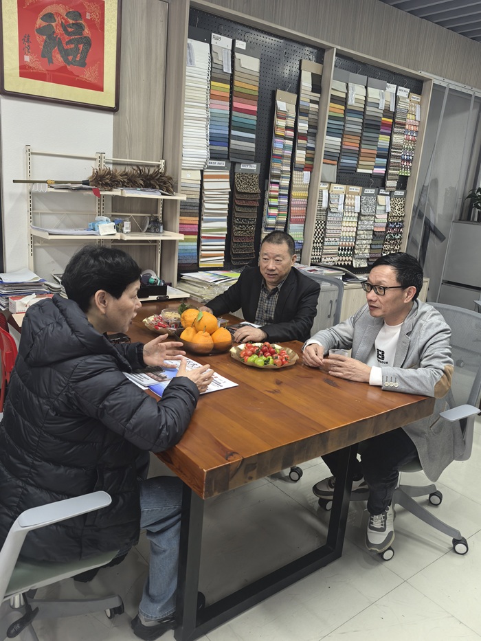 俞秘书长表示,拉链是皮革箱包产业链关键基础辅料,恒威拉链的技术实力与产能优势,可为宁波箱包企业提供稳定、优质的配套选择。 随后,俞万丰秘书长一行走访义乌金德利皮塑有限公司。企业专注皮革行业近40年,主营PU、PVC、超纤、植绒革等,产品广泛应用于箱包、服装、家装等领域,是义乌皮革行业标杆企业之一。交流中,双方就皮塑材料创新、定制化服务、产业链资源整合等方面深入探讨。俞秘书长表示,金德利皮塑在功能性、环保性皮塑材料上的积累,能为宁波皮革箱包企业提供更多元的材料选择。 最后一站,俞万丰秘书长来到义乌大大箱包材料有限公司。该公司是义乌皮革行业龙头企业,主营PU、PVC人造革、无纺布、牛津革等箱包材料,产品远销欧美、东南亚等地区,具有较强的市场影响力。座谈中,双方围绕箱包材料环保化、轻量化趋势,以及宁波企业对高端、特色面料的需求进行交流,并一致认为两地皮革箱包企业有较高的契合度,应持续加强交流合作。 |